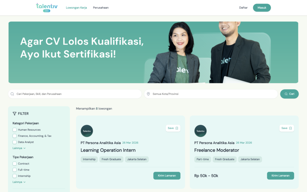 Perusahaan tidak perlu saring kandidat dari nol — semua sudah dikurasi oleh Talentiv